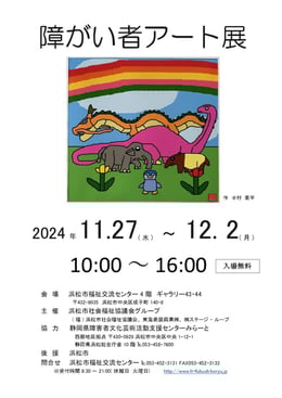 「障がい者アート展」を、今年も浜松市福祉交流センターにて実施します。