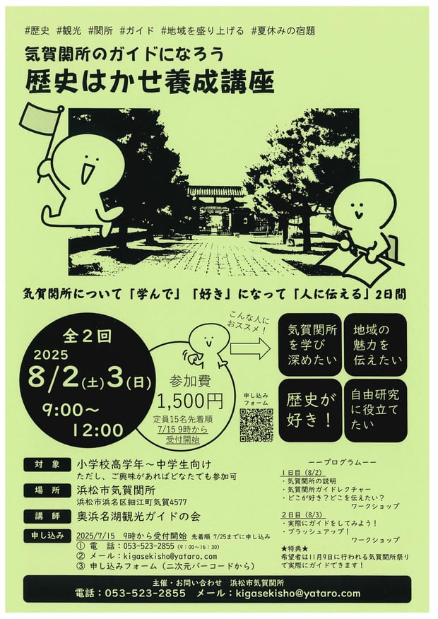 気賀関所を学び深めたい、地域の魅力を伝えたい、歴史が好き!、自由研究に役立てたい、などの思いがある人にオススメです。