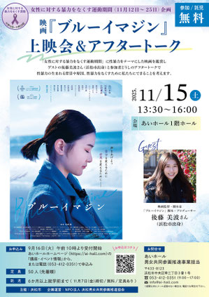 ゲストに映画「ブルーイマジン」脚本・プロデューサーの後藤美波さん(浜松市出身)をお迎えして上映会&アフタートークを開催します。