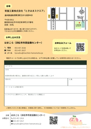 または、はまこら(浜松市市民協働センター)に電話、FAX,メールのいずれかで