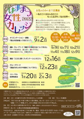 「はままつ女性カレッジ」~私のコトはみんなのコト もっと広がれ!私の世界~が始まります!