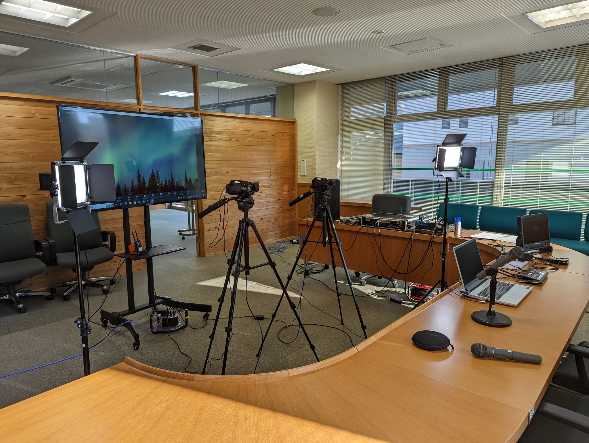 常設設備:映像機材(カメラ・スイッチャ―)、音響機材(マイク・ミキサー)、長机、椅子