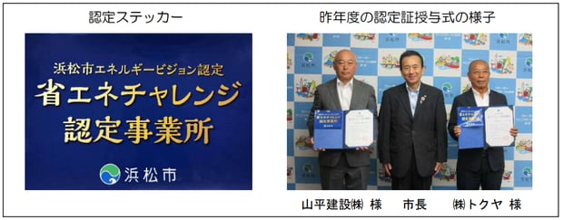 浜松市エネルギー政策課では、省エネ等に取り組む団体を認定しております。