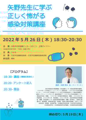 5月26日(木)「矢野先生に学ぶ正しく怖がる感染症対策講座」浜松市市民協働センターにて開催します。