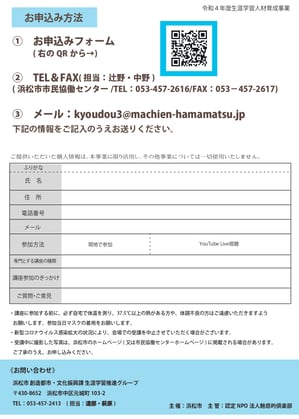 浜松市創造都市・文化振興課から生涯学習講師スキルアップ講座のお知らせです。