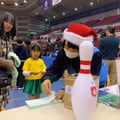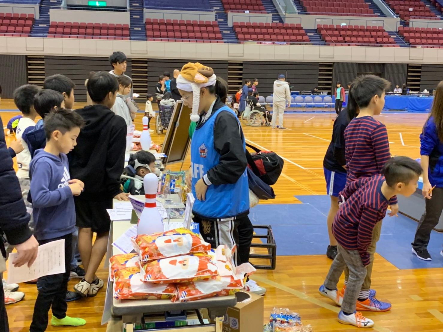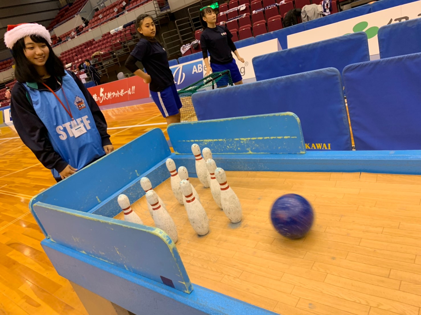 ボールを手で投げるボウリングと、足で蹴るボウリングの2つの種目がありました!倒したピンによってもらえる景品が違います!